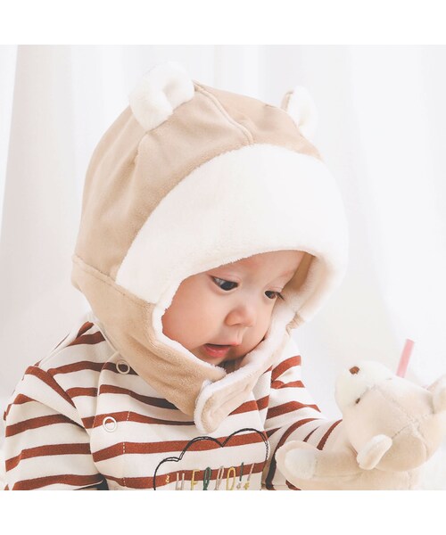 耳まであたたかなアニマル耳付きのベロアフリース生地を使用したフライトキャップ。 ピンク:ウサギ、ベージュ:クマとカラーごとに異なるアニマルの耳をオンしました。 立体的な耳は帽子をかぶるとぴょこんと飛び出て、前から見ても後ろから見ても最高にかわいいアイテム◎ お気に入りのアニマルを選んでね! ベビーらしい柔らかなカラーとふわふわのボアが、冬ならではの楽しさを誘います。 サイドにオンした刺しゅうがアクセントになっています。 お顔の下でマジックテープを止めてしっかり防寒。 体温調節が苦手なベビーの頭をやさしく包み込みます。 通園や公園遊び、お散歩など、秋冬のお出かけに大活躍☆ 男の子、女の子どちらにもおすすめのアイテムで、ベビーのお祝いのプラスワンにもぴったりです。 2023年秋冬男の子・女の子アイテム。 【SLAP SLIP(スラップ スリップ)】 ~子どもの欲しいをカタチに~ ヨーロッパのこどものように 子どもらしい今しか着れないナチュラルなかわいさを提案 どこか上品で清楚感漂うフレンチカジュアルは いつものコーディネートをさりげなく格上げ