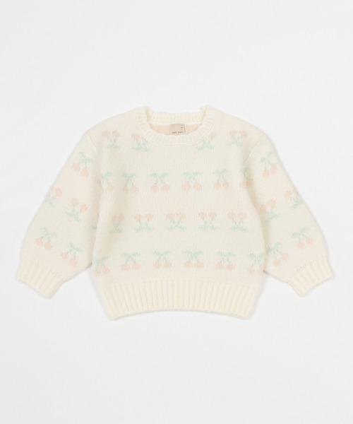 着心地にこだわったフワもちっとシリーズから登場のニットです。 モチーフにチェリーとハートを選び、カラーによって総柄とワンポイントの計4パターンをご用意しました。 衿ぐりはスカラップ形状にして、顔まわりを華やかに演出。肉感があり、寒い日の着こなしに重宝すること間違いなしです。 内側にはお名前を記入できるタグつき。ご自宅の洗濯機で洗えるマシンウォッシャブル仕様です。 【透け感】透けない 【生地の厚さ】普通 【伸縮性】あり 【裏地】なし 【ポケット】なし