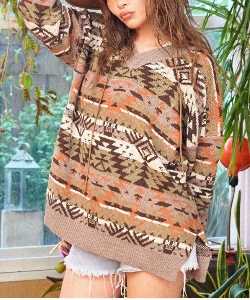 オルテガデザインが目を引くニットトップス。 ●落ち着いた色合いが大人っぽいアイテム。 ●Vネックなので顔周りをスッキリと見せ、サイドのスリットが抜け感をプラスします。 ●ショートパンツやフレアパンツなどとのコーデはもちろん、ラフなストレートパンツを合わせたこなれ感のある着こなしも◎ ●ソフトタッチで肌触りが良く、着心地も抜群です。 ※ストレッチあり※裏地なし ※生地のデザイン上、実際の商品と画像とで柄の配置が異なる場合がございます。予めご了承ください。 ※ニット素材のため、伸縮性があり記載しているサイズと若干異なる場合がございます。予めご了承ください。 ※商品のお取扱いに関しましては、商品に付属のアテンションカード、洗濯ネームをご覧ください。 ※モデル着用画像は光の当たり具合で色味が違って見える場合がございます。 ※商品の色味の目安は、色見本画像をご参照ください。 【お買いものをお楽しみいただく為に!】 ▼商品のお気に入り登録 完売カラーの再入荷通知や、ラスト1点の通知、セールの通知も受け取ることができます。 ▼ブランドのお気に入り登録 新商品や再入荷など、いち早くブランドのお得な情報を受け取ることができます。