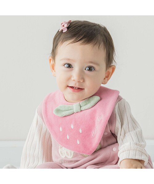 大きなイチゴのモチーフがインパクトのあるスタイ。 リボンタイのようなイチゴのヘタがポイントになっています。 明るいカラーでお顔周りがパッと華やかになるアイテムに仕上げました。 ラメ糸でほどこしたスラップスリップのロゴが、さりげなくキラッと光るアクセントになっています。 デイリー使いからちょっとおめかししたい時にまで使える万能アイテム。 キュートなデザインのスタイでベビーらしい可愛さを演出します。 秋冬のお出かけが楽しくなる1枚です。 何枚あっても困らないスタイは、プレゼントのプラスワンアイテムやプチギフトにもオススメ。 女の子らしいピンクとイチゴのような濃い目ピンクのピンク系の2色展開です。 【SLAP SLIP(スラップ スリップ)】 ~子どもの欲しいをカタチに~ ヨーロッパのこどものように 子どもらしい今しか着れないナチュラルなかわいさを提案 どこか上品で清楚感漂うフレンチカジュアルは いつものコーディネートをさりげなく格上げ 2023年秋冬女の子アイテム。 【SLAP SLIP(スラップ スリップ)】 ~子どもの欲しいをカタチに~ ヨーロッパのこどものように 子どもらしい今しか着れないナチュラルなかわいさを提案 どこか上品で清楚感漂うフレンチカジュアルは いつものコーディネートをさりげなく格上げ