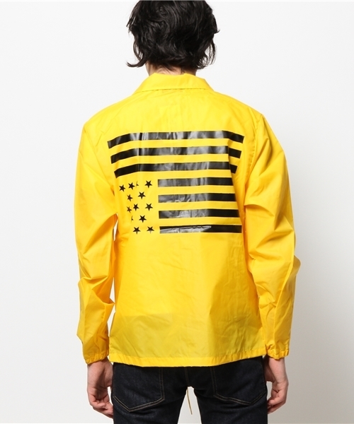 昨シーズンからトレンド継続のコーチジャケット! 今シーズンはプリントバリエーションも豊富にMADE IN USAで登場です。 ジャケット感覚でシャツやTシャツ、カットソーの上に着用してもサマになるようにシルエットはクラシックに。 90'sカルチャーやストリートシーンを彷彿させる、バックに配された星条旗をモチーフにしたオリジナルプリントを掲げトレンドのコーチジャケットをアップデート。