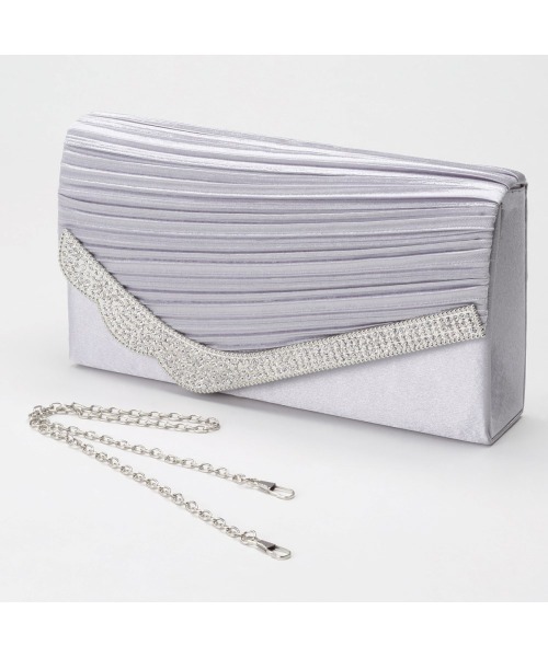 サテンプリーツときらきら光る金具が華やかなパーティバッグ。上品なデザインでドレスを引き立てます。 チェーンは取り外しできるのでクラッチバッグとしても使えます。 <仕様> 素材=ポリエステル サイズ=(約)たて13×よこ24×まち幅4cm 開閉=マグネット ポケット=中:1個(オープン)チェーン長さ:約60cm 取り外し可 重量=約260g 飾りは繊細なため、強い衝撃によっては取れる可能性があります。 ■キーワード NET、かばん、インターネット限定、クラッチ、ショルダー、パーティー、パーティーバック、フォーマルバッグ、ブライダル、ママ、ラージサイズ、レディース、入園式、入学式、卒園式、卒業式、夏、大人、女、女性、披露宴、母、結婚式、親、鞄、オケージョン、同窓会、成人式、謝恩会、
