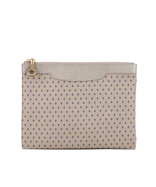 様々なシーンでお使いいただけるコンパクトサイズのクラッチ。 ドットにも見えるクラシックな柄は、シックで女性らしい配色にすることでモダンな印象に仕上げています。 ハイエンドキャンバスの本体と同様に表面にフィルムをラミネートしているため、程よいハリ感と撥水性も兼備。 細部まで抜かることなく、徹底的に素材にこだわった贅沢な作りです。 【お気に入り登録】 気になるアイテムは『お気に入り登録』がおすすめです。 オンラインサイトの各アイテムにある「ハートマーク」をクリックして簡単に追加できます。 お気に入りアイテムが、在庫残りわずか・再入荷などキャンペーン対象になった場合にお知らせいたします。 店舗へのお問い合わせ商品番号:R97-01106 ●製品寸法: 00:高さ18cm 幅(上部)23.5cm マチ2cm 備考:重量:約140g