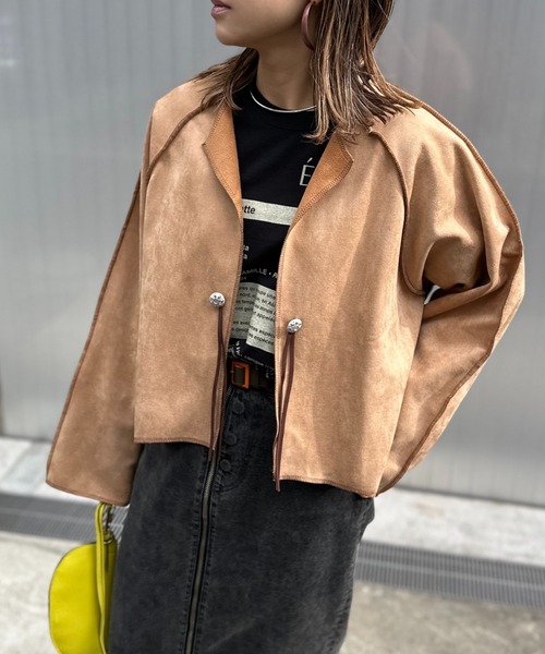 コンチョボタンが可愛い、レイヤードスタイルに使えるスウェードライクジャケット!! 高級感×カジュアル!スウェードライク素材のカジュアルジャケットです! 上にアウターも着やすい、薄手のムートンのような生地。 表が高級感あるスウェードライク素材で、内側は肌触りの良いボア。 AWシーズンから肌寒い春先までの◎ ラグランスリーブの ゆったりサイズのアームホールと、太めの袖で、レイヤードスタイルに◎ 柔らかい生地なのでアウターの中にカーディガン感覚で着用も◎ コンチョボタンと、配色ステッチがアクセントに! 衿から、内側のボア生地がチラッと見えるのもポイントに! 袖口を折り返して、内側のボアを見せるスタイリングも◎です! ベージュ、カーキ、ブラックの使いやすいカラーで、3色展開です。 同じ素材のBIGブルオーバーも!! 【リバーシブル2WAY】 スウェード×ボア 配色ステッチBIGプルオーバー 問い合わせ番号:79774210(ZOZO) 102243(店舗) スウェード/ボア/モコモコ/オーバーサイズ/ルーズシルエット/秋コーデ/カジュアル/大人カジュアル/秋冬コーデ/冬コーデ/配色/配色ステッチ/ショートジャケット/カーディガン/羽織/アウター/コンチョボタン/秋服/冬服/ラグランスリーブ/ラグラン/ムートンジャケット/ムートン/ 初秋/春服 【Information】 ◆《お気に入り登録》がオススメ◆ ・「商品のお気に入り登録」で再入荷通知や、ラストの通知、セール通知も受け取ることが出来ます。 ・「ブランドのお気に入り登録」で新商品や再入荷など、お得な情報を受け取ることが出来ます。 ※撮影時のライティング、ご覧になっているモニター・PC環境により、実際の商品と色味が異なって見える場合がございます。予めご了承をお願い致します。 ※他のキャンペーンにより、期間中に価格が変動する場合があります。 ※セールは予告なく終了させていただく場合もあります。