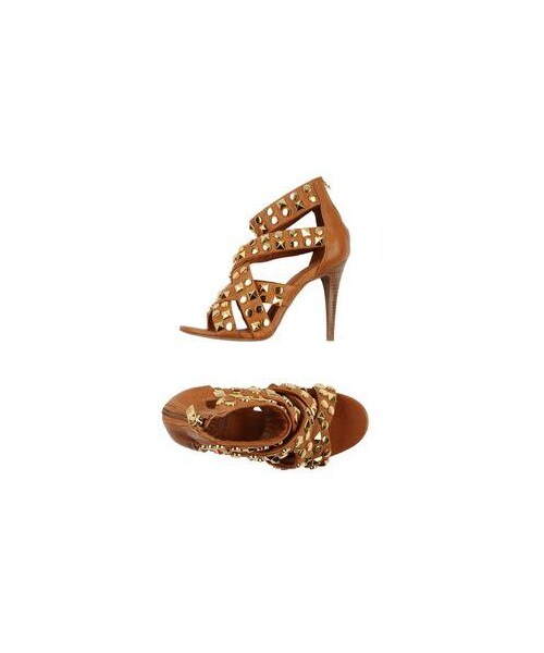 TORY BURCH Sandals. textured leather, studs, solid color, zip closure, round toeline, leather sole, stiletto heel, large sized. Lambskin