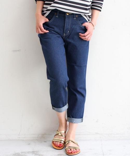 LEE1899年創立の、アメリカ発のデニムブランド『LEE(リー)』Levi's、Wranglerと並び3大デニムブランドのひとつとして、アメリカをはじめ世界中で支持を得ています。こちらは、アンクル丈が特徴のデニムパンツ。パンプス合わせや、マニッシュなレースアップシューズ等、旬のシルエットが今季らしい着こなしを演出します。ムラの無い爽やかなインディゴカラーもトレンド気分にぴったりのアイテム。デイリーの定番ボトムとして是非♪ ★INDIGO製品のお取り扱い注意★この製品はINDIGO(藍)染めです。他の製品では味わえない自然な色相が生命ですが、着用により他の衣服等に色が付着することがあります。また洗濯により徐々に染料がFADE-OUT(色あせ)します。取り扱いの際は、取り扱い表示をご確認の上、次の点に十分ご注意ください。 ・摩擦により淡い色のベルトやバックに色移りしますのでご注意下さい。 ・下着等は同色系のものを着用されることをおすすめします。店舗にてお問い合わせの際は、全国のBEAUTY&YOUTH 各店舗まで下記の品番をお申し付け下さい。品名:BBC LEE ANK TAPD NVY 品番:1614-499-3865