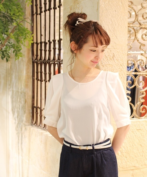 who's who Chico(フーズフーチコ) 前シーズンから大人気で即完売した袖がタックになったフェミニンなブラウスが入荷致しました。ふんわりとしたシルエットが女性らしく着こなして頂けます。袖口のゴールドのカフスボタンや、肩のデザインが上品でクラシックな印象☆タイトなボトムと合わせて、すっきりとしたコーデがおすすめです♪