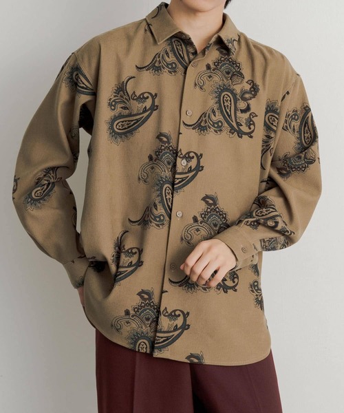 コーディネートの主役になるペイズリーシャツ〇大柄のペイズリーが特徴的で一枚で主役に〇無骨な雰囲気で格好良い印象に〇ルーズなシルエットと柄がベストマッチstyling今年はデニムと合わせて頂くのがお勧めです。ダークトーンのシャツのブラックデニムを合わせて無骨で格好良いスタイリングが◎スラックスで合わせる時はブーツでモードな雰囲気に。material微起毛のポリエステルツイル素材を使用しています【2023 Autumn/Winter】※この商品に使用されている素材は特性上、摩擦や汗、雨などによる水濡れにより色落ちし、洋服や周囲のものに色移りする恐れがありますので、白や淡色の洋服と組み合わせる際などは、お取り扱いに十分ご注意下さい。※商品画像は、光の当たり具合やパソコンなどの閲覧環境により、実際の色味と異なって見える場合がございます。予めご了承ください。※商品の色味の目安は、商品単体の画像をご参照ください。▼お気に入り登録のおすすめ▼お気に入り登録商品は、マイページにて現在の価格情報や在庫状況の確認が可能です。 お買い物リストの管理に是非ご利用下さい。-----------------------------透け感:なし伸縮性:なし裏地:なし光沢:なしポケット:なし-----------------------------