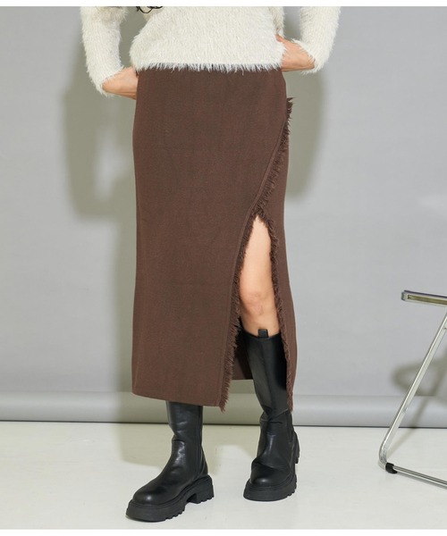 フリンジデザインが周りと差が付くIラインシルエットのニットスカート。 ●1枚でトレンド感のあるスタイリングを叶えます。 ●深く入ったスリットがセンシュアルな雰囲気を演出。 ●ウエストはゴムで楽に履けるのも嬉しいポイントです。 ●タイトで女性らしいシルエットなのできれいめトップスとの相性が◎ ●リラックス感とトレンド感を兼ね備えた、ワードローブにあると大活躍間違いなしのオススメアイテムです。 ※ストレッチあり※裏地なし ※ウエストゴムあり※裾切りっぱなし ※ニット素材のため、伸縮性があり記載しているサイズと若干異なる場合がございます。予めご了承ください。 ※商品のお取扱いに関しましては、商品に付属のアテンションカード、洗濯ネームをご覧ください。 ※モデル着用画像は光の当たり具合で色味が違って見える場合がございます。 ※商品の色味の目安は、色見本画像をご参照ください。 【お買いものをお楽しみいただく為に!】 ▼商品のお気に入り登録 完売カラーの再入荷通知や、ラスト1点の通知、セールの通知も受け取ることができます。 ▼ブランドのお気に入り登録 新商品や再入荷など、いち早くブランドのお得な情報を受け取ることができます。