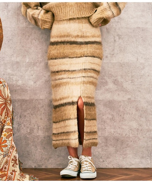 ふわふわと起毛したニット生地が肌触り抜群のニットスカート。●ストレッチのきいた伸びの良いニットの素材感と、ウエストはゴム仕様のためストレスフリーに履いていただけます。●起毛していることで、グラデーションのようなボーダー柄になり、柔らかい印象に。●サイドにはスリット入りで、動きやすいだけでなく抜け感もプラスします。●程よいIラインシルエットが身体のラインをすっきり見せ、こなれた雰囲気に◎●同素材を使用した【Vネック ボーダー 起毛 ニット】とセットアップでの着用もおすすめです。※ストレッチあり※裏地なし※ウエストゴムあり※生地のデザイン上、実際の商品と画像とで柄の配置が異なる場合がございます。予めご了承ください。※ニット素材のため、伸縮性があり記載しているサイズと若干異なる場合がございます。予めご了承ください。※商品のお取扱いに関しましては、商品に付属のアテンションカード、洗濯ネームをご覧ください。※モデル着用画像は光の当たり具合で色味が違って見える場合がございます。※商品の色味の目安は、色見本画像をご参照ください。【お買いものをお楽しみいただく為に!】▼商品のお気に入り登録完売カラーの再入荷通知や、ラスト1点の通知、セールの通知も受け取ることができます。▼ブランドのお気に入り登録新商品や再入荷など、いち早くブランドのお得な情報を受け取ることができます。