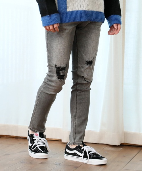 足元に抜け感を添えるダメージスキニーデニムパンツ!シルエットと穿き心地を重視したスキニーテーパードシルエットで全体をスリムにまとめて美脚効果もバツグンな一着。伸縮性抜群のストレッチデニム素材を採用。細身ながらも窮屈感の無い履き心地となっています。ビンテージ感抜群の仕上がりのダメージデニム加工を施し、極上の仕上りになっています。ファスナーはYKKファスナーを使用し拘りのクオリティー!細部や加工に拘ったスーパーストレッチデニムパンツです。【カラバリ】・ブラック・グレー・インディゴブルー・ブルー【お買い物をお楽しみいただく為に】▼商品のお気に入り登録完売カラーの再入荷やラスト1点の通知、セールの通知を受け取ることができます。▼お気に入りショップに追加新商品や再入荷など、イチ早くショップのお得な情報を受け取ることができます!