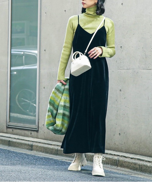 〔fabric&design〕ベロア素材の深いVネックラインのキャミワンピース。ラフに着ていただけるよう、ナローシルエットにしています。また身幅にゆとりがあるので、インナーに合わせるトップスの幅も広がってくれます。バックスタイルもVネックで抜け感を出し、リボンでポイントを付けています。〔styling〕ベーシックニットやスウェット、オーバーシャツとレイヤードさせて楽しんでいただきたいです。■透け感:なし■生地の厚さ:普通■裏地:あり■伸縮性:あり■光沢:ややあり■シルエット:スタンダード------------------------------------------------------◆商品のお気に入り登録◆ お気に入りアイテムの値下げ・再入荷・在庫1点などの通知を受け取ることができます。◆ブランドのお気に入り登録◆新商品や再入荷、セール、クーポン配布などお得な情報を受け取ることができます。------------------------------------------------------