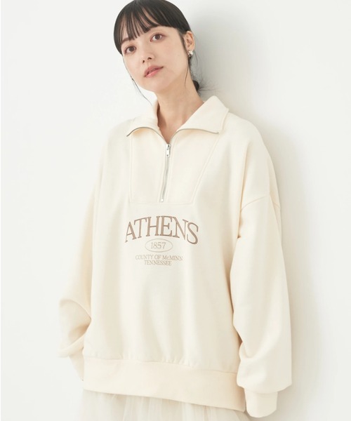 ロゴプリントがカジュアルなアクセントをプラスするチュニック。ハーフジップがスポーティカジュアルな印象に。ゆるっとしたオーバーシルエットでヌケ感があり、気負いなくスタイリング出来るのも嬉しいポイント◎コーディネートに取り入れるだけでも、トレンドライクな着こなしが楽しめるアイテムです。透け感[無し] 裏地[無し] 伸縮性[やや有り] 光沢感[無し] 生地の厚さ[普通] 付属品[無し] ポケット[無し]●製品寸法:F:バスト67cm 着丈70cm 袖丈55cm 肩幅63cm 裾幅52cm備考:
