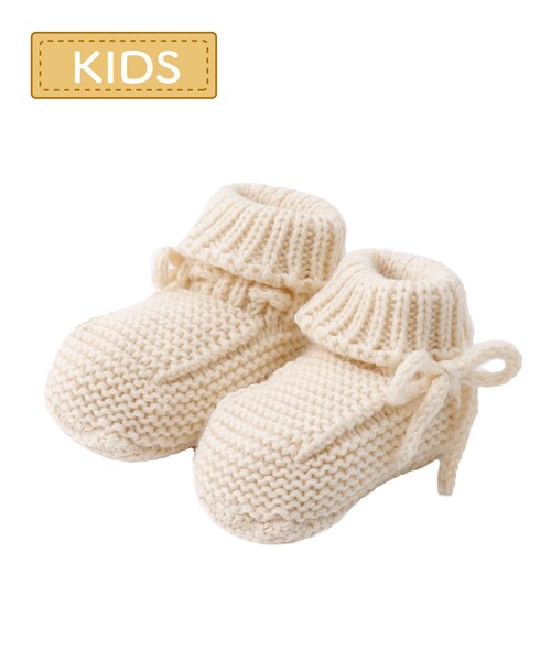 ●ニットで編まれたあたたかみのある靴下です。●サイドについた紐をリボン結びにすると可愛い♡●足裏部分にすべり止めがついているので転倒防止になります◎●寒い日の防寒対策としてお使いいただけます。《ご使用上の注意》●お子様がご使用の際は、必ず保護者の監督のもとご使用ください。●遊具やドアノブ、乗り物等に引っかかると危険ですのでご注意ください。●他の物との長時間の接触、汗・摩擦・水濡れにより、色落ち・色移りする可能性があります。雨天でのご使用や薄色の衣服を着用の際は特にご注意ください。●洗濯の際は、必ず他のものと分けて、やさしく押し洗いしてください。また、品質を損なう恐れがありますので、つけ置き洗いはしないでください。●洗濯後は強く絞らず、バスタオルなどで水分を取ってから形を整えて、すぐに陰干ししてください。●表面の毛羽が脱落したり、付着したりすることがありますので、強い摩擦は避けてください。●鋭利なものなどで生地をひっかけないようご注意ください。品質を損ねたりほつれる原因になります。●繰り返しの着用により、毛玉が発生する場合があります。無理に引っ張らず、はさみで丁寧にカットしてください。●体質によっては、かゆみやかぶれなどを起こす場合があります。異常を感じたらすぐに使用をおやめください。●直射日光や蛍光灯の長時間照射により、色あせや変色の恐れがありますのでご注意ください。●手作業の為、多少サイズや形状に誤差があります。予めご了承ください。●サイズが合わない場合は着用しないでください。●高温多湿を避け、通気性の良い場所で保管してください。●小さなお子様やペットの手の届かない場所で保管してください。●火気に近づけないでください。●本来の用途以外でのご使用はおやめください。