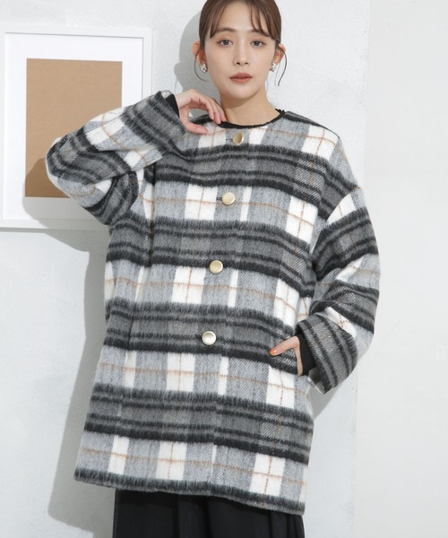 NANO universe(ナノ・ユニバース)『トレンドライクなシャギー素材が魅力』表情のある上品なシャギー素材と大き目のボタンがポイントのノーカラーコート。身体を包み込んでくれるオーバーすぎない、ややゆとりのあるシルエット。ノーカラーで首回りがスッキリしているので、タートルや厚手のストールなど合わせやすいのが嬉しいポイント◎。着丈も長すぎないのでボトムを選ばず、様々なスタイリングを楽しめるアイテムです!―DETAIL―・表情のある上品なシャギー素材と大き目のボタンがポイントのノーカラーコート・身体を包み込んでくれるややゆとりのあるシルエット・首回りがスッキリ見えるノーカラー・タートルや厚手のストールなど合わせやすいのが嬉しいポイント◎・合わせるボトムを選ばない着丈感・様々なスタイリングに合わせやすいデザイン・デイリーの着回しに重宝―FABRIC―・毛足が長く毛羽立っているような質感の素材・上品で高級感がある雰囲気が特徴■取扱方法クリーニングネットを使用してください。光に当たらない場所に保管してく下さい。本品は素材の特性上、表面が地にひっかかりやすいので取扱にご注意ください。着用中の摩擦や洗濯により、毛羽立ちや毛玉(ピル)が生じる事がありますので、お取扱いにはご注意ください。 ▼商品のお気に入り登録お気に入りアイテムの再入荷や残り1点の通知を受け取ることができます。▼ブランドのお気に入り登録新作アイテムの入荷や人気アイテムの再入荷、タイムセールやクーポンなど、いち早くブランドのお得な情報を受け取ることができます。※サンプルにて撮影、採寸を行う為、実際にお届けする商品と仕様やサイズが異なる場合がございます。