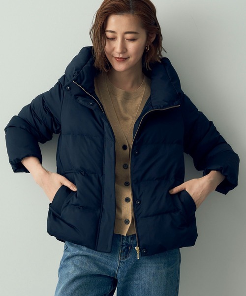 軽くて暖かな中綿ブルゾン。 高めのハイネックデザインは首元をすっぽりと覆ってくれ、マフラーいらずなのも嬉しいポイント。 シンプルなデザインが大人っぽく、ボトムスを選ばずにスタイリングできる優秀アイテムです。 透け感[無し] 裏地[すべて有り] 伸縮性[無し] 光沢感[やや有り] 生地の厚さ[厚手] 付属品[無し] ポケット[有り]前2つ ●製品寸法: F:バスト54 着丈60 袖丈59.5 肩幅39.5 裾幅ゴム上がり48 備考: