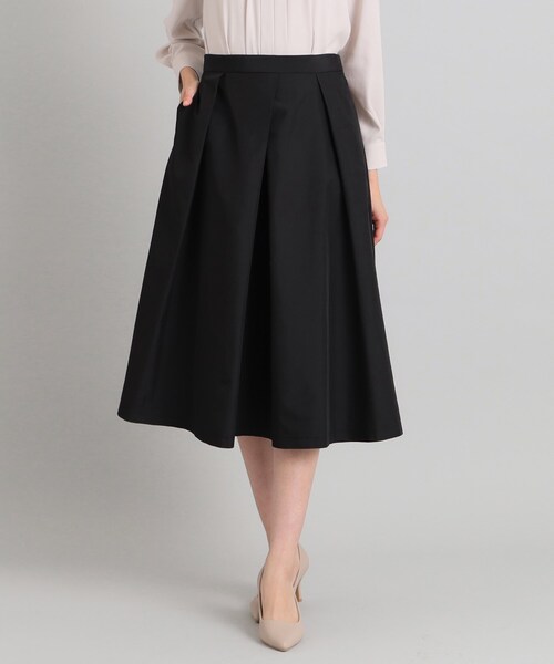 OPAQUE.CLIP NAVY 程よいハリ感のある素材を使用した、タックフレアスカート 【デザイン】 ・タックデザインでフレアシルエットを出した、きれいめフレアスカート ・ジャケットなどを合わせたスタイルに合わせやすい、ひざが隠れる位の丈感で、オケージョンシーンにもおすすめです。 ・後ろ中心にゴムを配しており、着心地やフィット感も◎のアイテム ※左脇ファスナー ※ポケット数:横×2 【素材】 ・ドライな質感のタフタ素材を使用 ・程よいハリがありシルエットをきれいに演出しつつも、軽さがあり広がりすぎないのがポイント ・マシンウォッシャブル ※裏地あり --------------- 【OPAQUE.CLIP NAVY/オペーク ドット クリップ ネイビー】 「ハレの日の特別な装い」をコンセプトに、想い出に残る大切なワンシーンを彩るアイテムを提案するレーベル。 通勤からセレモニー、パーティー等のシーンに対応した、良質感と華やかさのあるスタイルを提案します。 【スタッフコメント】 sachiko(174cm/着用サイズ 40) Lサイズでウエスト周りは余裕がありました。程よくハリ感のある素材で上品な印象に。後ろ中心がゴムになっているので履き心地快適です♪ モデル情報:身長166cm B72 W57 H84 着用サイズ:38(M) 店舗へのお問い合わせ商品番号:637-78002 ●製品寸法: 36(S):総丈73cm W67cm 38(M):総丈74cm W70cm 40(L):総丈76cm W73cm 42(LL):総丈76cm W76cm 備考: