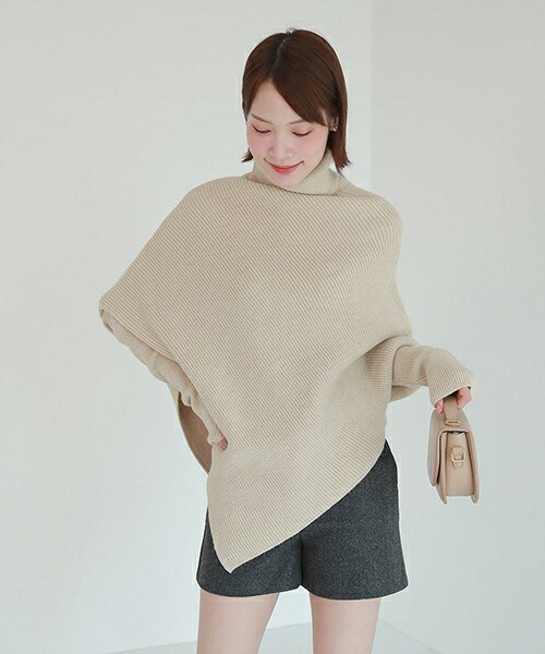 ユニークなフォルムでコーデの雰囲気高まるニット✨ 細身のフレアパンツとメリハリを演出して完成度UP↑ マーメイドスカートで綺麗めにまとめるのもGOOD! ・ドルマン×長袖(切り替え) ・Vカット×アンバランスヘム ・ルーズ