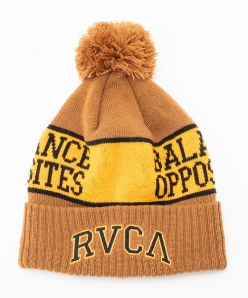 【RVCAのステートメント、BALACE OF OPPOSITESの文字を編み込んだポンポン付きのアクリル製ビーニー】●折り返したカフにRVCAロゴが刺繍で施されています。●トップにはポンポンを配し、秋冬らしい温もりのあるアイテムに仕上げました。※掲載画像に関しましては、屋外や屋内での光の当たり方やパソコンやスマートフォンなどの閲覧環境によって実際の色味と異なる場合がございます。予めご了承ください。※サイト内でのカラー名と、お届け商品に記載されているカラー名が異なる場合がございます。