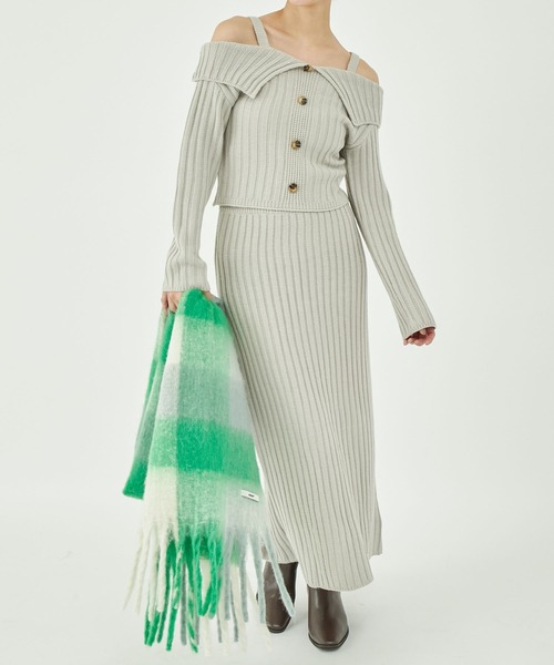 オフショルデザインのニットトップスとニットスカートがセットになったお得なアイテム。 ●伸縮性のある生地で着心地が良く、太リブで縦ラインが強調されスッキリとした印象に魅せてくれます。 ●リラクシーながら女性らしいシルエットに仕上がります。 ●トップスはオフショルデザインのため、デコルテや肩回りの肌見せをすることで小顔効果も期待できます。 ●ニットスカートはウエストがゴム仕様でストレスフリーな履き心地。 ●バックスリット入りで動きやすさも◎ ●どちらもセットで着用するだけでなく、別々で着回しが可能な万能セットアップです。 ※ストレッチあり※裏地なし※ウエストゴムあり ※リブニット素材のため、伸縮性があり記載しているサイズと若干異なる場合がございます。予めご了承ください。 ※商品のお取扱いに関しましては、商品に付属のアテンションカード、洗濯ネームをご覧ください。 ※モデル着用画像は光の当たり具合で色味が違って見える場合がございます。 ※商品の色味の目安は、色見本画像をご参照ください。 【お買いものをお楽しみいただく為に!】 ▼商品のお気に入り登録 完売カラーの再入荷通知や、ラスト1点の通知、セールの通知も受け取ることができます。 ▼ブランドのお気に入り登録 新商品や再入荷など、いち早くブランドのお得な情報を受け取ることができます。