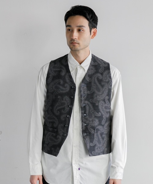 【サッと羽織るだけでサマになる。ジャカード柄が美しいベスト】 先染めで表現した繊細なペイズリー柄をウールジャカードで表現した、非常に上品なファブリックを使用したジレタイプのベスト。サッと羽織るだけでサマになり、シンプルなTシャツやパンツなどベーシックな着こなしプラスするだけでコーディネートをオシャレに格上げさせるアイテムです。同素材のイージーパンツとセットアップで着用いただくのもおすすめです。 ーーーーーーーーーーーーーー 透け感:なし 伸縮性:なし 裏地:あり 光沢:なし 生地の厚さ:普通 ーーーーーーーーーーーーーー 【確認事項】 *照明の関係により、実際よりも色味が違って見える場合があります。またお客様のパソコン・スマートフォンなどの環境により、若干製品と画像のカラーが異なる場合もございます。予めご了承ください。 *取り扱いについては、商品についている品質表示でご確認ください。 ▼この商品のお気に入り登録▼ カートボタン付近の♡をクリックして商品をお気に入り登録をすると、完売カラーの再入荷通知や、ラスト1点の通知、セールの通知などを受け取ることができます。 ▼AMERICAN RAG CIEのお気に入り登録▼ 「♡お気に入りショップに追加」をクリックすると、新商品や再入荷等、AMERICAN RAG CIEの最新情報を受け取ることができます。