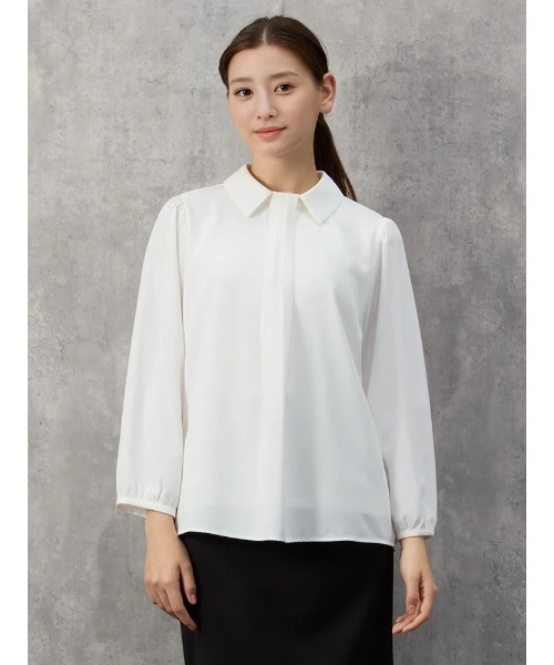 光沢素材で上品な佇まいに仕上げた、9分袖の衿付きブラウス。首元のタック使いをボウタイ風に見せることで、装いにさりげない華やぎをプラスしました。 さらりと1枚着としてはもちろん、ジャケットのインナーとしてもお使いいただける、オンコーデにぴったりのアイテムです。 【注意事項】 ※使用前に、タグ等に記載されている「取り扱い上の注意書き」、「洗濯表示」を必ずご確認ください。 ※商品画像は、光の当たり具合やパソコンなどの閲覧環境により、実際の色味と異なって見える場合がございます。 あらかじめご了承ください。 【商品のお気に入り登録がおすすめです】 お気に入り登録した商品は、最後の1点の通知、完売商品の再入荷、お得なお値下げ時にお知らせします。 【Perfect Suit FActory/P.S.FAのお気に入り登録がおすすめです】 P.S.FA新商品発売、再入荷や、セール情報など、お得な情報を受け取ることができます。