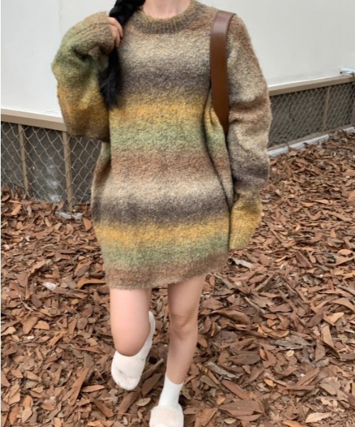 1枚でコーディネートがサマになるグラデーションニット。 インパクトがありながらも優しく柔らかい配色で、コーディネートに取り入れやすいアイテム。 シーズンムードを高めてくれる、ふわふわとしたウォーミーな風合いのブークレ糸を使用し、柔らかく、伸縮性のある素材感が魅力です。 ※ミックス糸を使用しているのでパーツごとの配色に個体差がございます。 ・・・・・・・・・・・・・・・・・・・・ 透け感 : なし 厚さ:厚手 伸縮性:あり ・・・・・・・・・・・・・・・・・・・・ ※商品画像は撮影時の光や角度により、実物の色味と異なって見える場合がございます。 ※撮影はサンプル品を使用しており、表示のサイズ感も実物とは若干異なる場合もございますので、予めご了承ください。 ※生産時期により色・素材・サイズ感など多少異なる場合がございます。予めご了承ください。