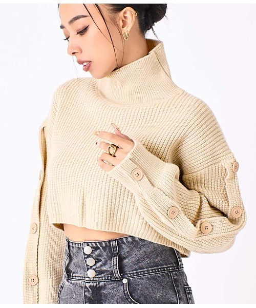 ボタン付きの袖デザインがアクセントになったクロップド丈のニットトップス。 ●ゆったりとリラックス感のある着心地で、ハイネックのため首元もあたたかく着ていただけます。 ●シンプルなデザインが汎用性高く、柄物との相性も抜群。 ●クロップド丈なのでボトムとのバランスも取りやすく、脚長効果も◎ ●カジュアルにもキレイ目にもマッチする万能なデザインです。 ※ストレッチあり※裏地なし ※ニット素材のため、伸縮性があり記載しているサイズと若干異なる場合がございます。予めご了承ください。 ※商品のお取扱いに関しましては、商品に付属のアテンションカード、洗濯ネームをご覧ください。 ※モデル着用画像は光の当たり具合で色味が違って見える場合がございます。 ※商品の色味の目安は、色見本画像をご参照ください。 【お買いものをお楽しみいただく為に!】 ▼商品のお気に入り登録 完売カラーの再入荷通知や、ラスト1点の通知、セールの通知も受け取ることができます。 ▼ブランドのお気に入り登録 新商品や再入荷など、いち早くブランドのお得な情報を受け取ることができます。