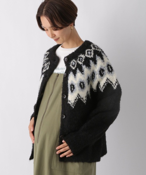 前後2WAYで使える万能トップス!【デザイン】ノルディック柄が象徴的なニットです。プルオーバーとしてもカーディガンとしても使えるアイテムになっています!ふわふわとした肌触りで着心地も◎【スタイリング】・すっきりとしたシルエットのパンツと合わせるのがおすすめです。・落ち感のあるサテン生地のスカートと合わせるのも◎