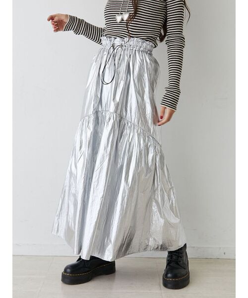 【ポイント】トレンド感MAXなメタリック素材を贅沢に使ったギャザーデザインが豪華で目を惹くフレアスカートです!いつものコーディネートに取り入れるだけで今っぽくなります。【スタイリング】メタリック素材はニットとの相性が抜群です!ウエストのドロストデザインを見せる、ショート丈トップスとの合わせがおすすめです。ボトムスインしてウエストを見せるとスタイルアップもできます。【商品特徴】透け感:なし伸縮性:なし生地の厚さ:普通サイズ感:普通裏地:ありポケット:なし※着用画像はフラッシュの加減で実際の製品と色味等が異なる場合がございますので、生地のズームアップ画像をご確認ください。※ご利用の端末画面の設定により実際の商品と色味が異なる場合がございます。※正しいサイズはアイテムサイズ表をご確認ください。※商品のお取り扱いについては、脇についている洗濯ネーム類をご確認下さい。【jouetie ZOZOTOWN お買い物ガイド】▼商品をお気に入り登録!♡をクリック!完売商品の再入荷やラスト1点の通知、セール開始時にお知らせ!▼"jouetie(ジュエティ)"をお気に入りブランドに登録!新商品や再入荷など、ブランド最新情報をいち早くお知らせ!