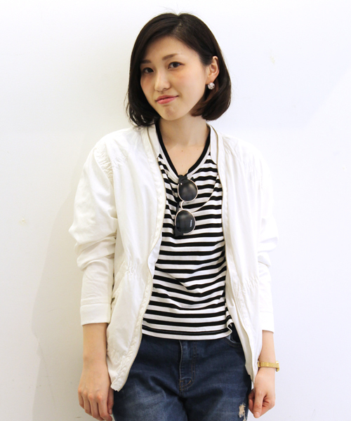 WHO'S WHO gallery(フーズフーギャラリー) ネックラインまで続くフルジップがアクセントのブルゾン。ポケット部分の切り替えを引き立てるステッチワークがポイントになっています。ミリタリーライクなタフルックながら、ガーリーな着こなしの外しとして投入しやすいのも魅力のひとつ。デイリーで着こなせるライトアウターです。