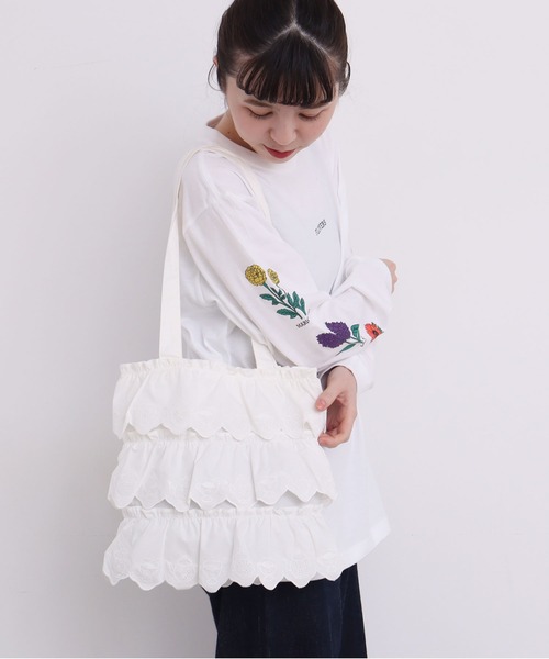 刺繍のレースを贅沢に使ったトートバックは ティータイムをイメージしたdidiziziならではのオリジナル刺繍レースがアクセントになっています。 小ぶりに見えるのに荷物はしっかり入るのもうれしいポイント。 サブバックとしてはもちろん、メインに持ちやすいサイズ感です。 ※製品の特性、取り扱いの注意 この製品は、刺繍をほどこしております。刺繍部分を乱暴に扱いますと破損しやすく、糸引き や糸切れがおこりやすいので、 強い摩擦をさけ、着脱時には充分注意して下さい。 この製品は、素材の特性上汗や雨等でぬれた時、強くこすられた場合等、多少の色落ち、色移りする事が有ります。 また、裁ち切り刺繍をほどこしておりますので、刺繍部分を乱暴に 扱いますと破損しやすく、強い摩 擦や洗濯には、充分御注意下さい。 お洗濯は裏返しにしてネットに入 れ単独の手洗い後、軽く脱水機に かけるか、タオル等で水分を吸い 取って頂き、形を整えて平干しして下さい。 多少の縮みを生じる場合がありますので、形を整える際は、必ずあて布を使いスチームアイロンで丁寧に仕上げて下さい。 また、引っかかりの恐れがある為アクセサリーやバッグ等の摩擦にもご注意下さい。この製品を洗濯する際には多少縮む場合がありますので、できるだけ手洗いをして形を整えてから日陰で平干ししてください。 タンブラー乾燥はお避けください。 塩素系漂白剤はご使用にならないでください。色が変わることがあります。 ※光の関係で実物の商品の色味とは若干異なる場合がございます。あらかじめご了承ください。 ※商品はサンプルです。実際の商品と仕様、加工、サイズが若干異なる場合がございます。 ※取り扱いの注意については取り扱い表示をよくご確認の上、着用をお願いいたします。 didizizi (ディディジジ) CONCEPT 2つの対になったソックスから生み出される 楽しくて心躍る素敵な世界。 小物を中心に展開しているブランド。 didiziziというブランド名の由来は、 「di:2つの、zi(zingy):おもしろくてたまらない。すごく魅力的な。」 という英語の造語。 ※取り扱いの注意については取り扱い表示をよくご確認の上、着用をお願いいたします。
