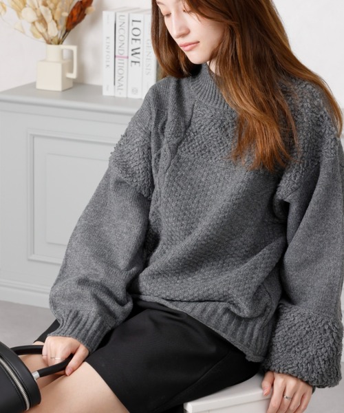 ケーブル柄と編地の切り替えが可愛いパッチワークデザインのニットプルオーバーです。ふんわりと柔らかい気心地で、大人カジュアルのこなれ感あるスタイルが完成します。 様々なボトムに合い、カジュアルにデニム合わせでもレディーライクにスカート合わせもおすすめです。