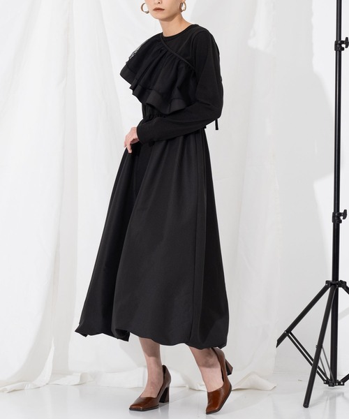 チュール素材を重ねたボリューミーな衿がアクセントになったカットワンピース。●衿は取り外し可能なため、衿なしのベーシックなワンピースとしても着ていただけます。●シンプルな無地ながらも上身頃とスカート部分で切り替えたデザインや、スカートのバルーンシルエットで個性も残した1枚。●上身頃は柔らかくストレッチの効いた素材で、ウエストはゴム仕様なので着心地も◎●セットで着るだけでなくそれぞれ単体使いもでき、衿の付け方で変化を楽しめます。●デイリー使いはもちろん、結婚式、二次会、オケージョンシーンにもおすすめのワンピースです。※上身頃のみストレッチあり※下身頃のみ裏地あり※ウエストゴムあり※衿取り外し可能※商品のお取扱いに関しましては、商品に付属のアテンションカード、洗濯ネームをご覧ください。※モデル着用画像は光の当たり具合で色味が違って見える場合がございます。※商品の色味の目安は、色見本画像をご参照ください。【お買いものをお楽しみいただく為に!】▼商品のお気に入り登録完売カラーの再入荷通知や、ラスト1点の通知、セールの通知も受け取ることができます。▼ブランドのお気に入り登録新商品や再入荷など、いち早くブランドのお得な情報を受け取ることができます。