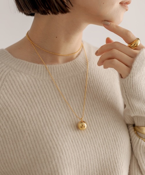 カジュアルからモードまで幅広いスタイルにマッチ ●デザイン 2重にしてアレンジも楽しめるロングネックレス。 コロンとしたボールチャームが程よい存在感を加えてくれます。 縦に長いロングネックレスはIラインを強調しすっきりした印象に見せてくれる効果も。 ほっこりとしがちなニットコーデのワンポイントになるだけでなく、ワンピースコーデの首元のアクセントにもおすすめなアイテムです。 ●サイズ 全長80cm +アジャスター長さ:5cm チャームのボールサイズ:直径 1.6cm ●素材 真鍮 ========================== 【注意点】 ※画像の商品は光の照射や角度、お使いのモニター環境により、実物と色味が異なる場合がございます。 あらかじめご了承下さいませ。 ※入荷状況により、お届け予定が前後する場合があります。 ※お客様への発送が店頭販売より遅れる場合もあります。 ※追加生産商品は、一部の店舗、通販で販売中の場合がございます。 予めご了承下さい。 ========================== 【お買い物をもっと便利に楽しく♪】 『♡』をクリックでお気に入り登録 ✓「商品のお気に入り登録」で・・・ ラスト1点や再入荷の通知が届きます。登録して頂いた商品だけが対象となる、あなただけのタイムセールが開催されることも! ✓「ブランドのお気に入り登録」で・・・ 新商品や再入荷など、いち早くブランドのお得な情報を 受け取ることができますので、ご登録をおすすめします! ==========================