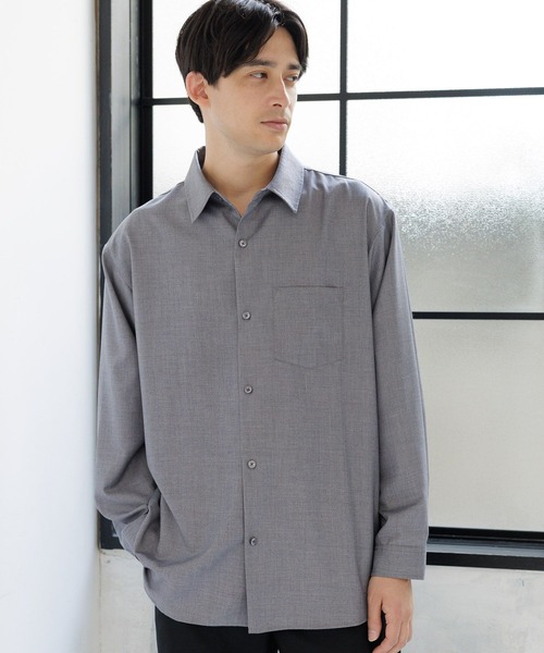 シンプルで着回しの効くレギュラーカラーシャツ。 ほどよく抜け感のあるリラックスシルエット。 【素材】 なめらかな肌触りのTR素材(ポリエステル×レーヨン)。 ハリがありクリーンな印象の生地感。 シャツとして使用していた素材を見直し、よりソフトな着心地と通年着やすい生地感へ。 【スタイリング】 クリーンなスタイリングと相性〇