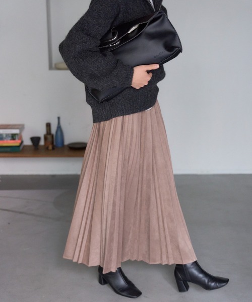 \\ポンチスエードプリーツスカート//程よい落ち感で、広がりすぎないシルエット毎年人気のプリーツスカートが今年も新色をプラスして再入荷!程よい落ち感で広がりすぎず、上品に穿けるプリーツスカート。ランダムなプリーツ加工で動きが出やすく、秋冬らしいポンチスエード素材を使用◎ウエストはゴム仕様で快適な着心地。トップスを選ばず、オンオフ問わず活躍する万能アイテムです!✔️ ランダムプリーツが立体感のあるシルエット✔️ ポンチスエード素材で秋冬らしい表情に✔️ ウエストゴムでリラックスした穿き心地✔️ ベーシックから新色まで揃うカラーバリエーション【STYLING POINT】・ニットやスウェットと合わせてデイリーに・ブラウスやジャケットと合わせればオフィス仕様に・ショート丈トップスでバランスよくスタイルアップ・ブーツ合わせで秋冬らしい着こなしに※ATTENTION※・色落ちの恐れがありますので、他のものと分けて洗って下さい。・アイロンの際はあて布の使用をおすすめいたします。■TRIANGLE PALETTE/トライアングルパレット何気ない日常も、どこか特別に。シンプルだけど、ちゃんと今の気分を感じられる。大人の毎日にそっと馴染み、自然体の自分を引き立てるスタイルを提案します。@trianglepalette_zozotownインスタグラムでは発売前のアイテムやクーポン・お買い得情報など様々な情報を配信中!■お気に入り登録がオススメ・「商品のお気に入り登録」で再入荷通知や、ラストの通知、セール通知も受け取ることが出来ます。・「ブランドのお気に入り登録」で新商品や再入荷など、お得な情報を受け取ることが出来ます。※商品画像は撮影時の光や角度により、実物の色味と異なって見える場合がございます。※生産時期により色・素材・サイズ感など多少異なる場合がございます。予めご了承ください。