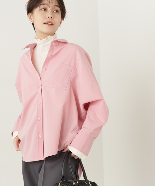 リラックスした着心地のオーバーシャツ。襟を後ろに抜いて着ると、首元がすっきり見えて抜け感を演出してくれます。背面は切り替えを入れるなど、体のラインを拾いすぎないルーズシルエット。インに薄手のハイネックトップスをレイヤードするのもお勧めです。フェミニンな雰囲気のナロースカート、マスキュリンなパンツ、大人カジュアルにぴったりなデニムパンツも相性抜群です。**********************透け感:なし裏地:なし伸縮性:ややあり光沢感:なし生地の厚さ:普通**********************