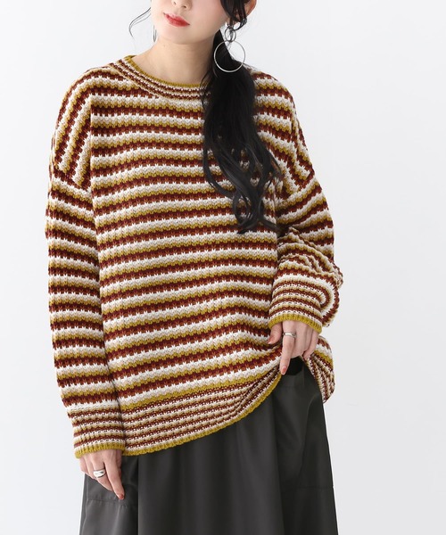 5色の糸を使用したマルチカラーのボーダーがポイントのニット。程よくゆとりのあるクルーネックデザインで、インナーにタートルネックを合わせても楽しめます。 立体感のあるリブ編みニット。 柔らかな肌触りで着心地も快適な一着です。 コーデが映える、≪ n'OrLABEL ≫マルチボーダー柄ニットです。 ニット製品につきまして。 ニット製品は、身体に自然と馴染む伸縮性が特徴となります為、 編み上げる行程やプレス仕上げによって多少サイズや風合いの個体差が生じる場合がございます。 着用した時と実寸の長さが変わる可能性がございます。 また、着用の際ピリングが避けられず、完全に防止することはできません。 ピリングができましたら、引っ張ろうとせずハサミや毛玉取り器で丁寧に取り除いてください。 ニット素材の持つ特性となります為ご了承の上ご購入いただきますようお願いいたします。 ローゲージニットにつきまして。 やわらかな糸を数本合わせて編むことにより、独特のざっくりした風合いを出しております。 先の尖ったものや、ざらついたものに引っかかり、糸が飛び出すことがございますので着用時にご注意お願いいたします。 組織の特性となります為、ご了承の上ご購入いただきますようお願いいたします。