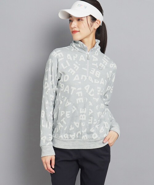 【デザイン】 大胆にランダムロゴを総柄でデザインしたハーフジップの長袖プルオーバーです。 総柄アイテムですが、ベーシックなツートーンカラーでデザインしました。 様々なアイテムと組合わせていただきやすいアイテム。 ハーフジップデザインなので、楽に着脱していただけます。 フロント部分にポケットがあるので、小物を一時的に保管することが可能。 一枚でも暖かい微起毛素材ですが、重ね着も可能なゆったりシルエットです。 モックネックやポロシャツの衿元をのぞかせるとおしゃれ見えします。 メンズも同じデザインで長袖プルオーバーをご用意しております。(品番:082-17121) ※ポケット数:前×2 【素材】 肌触りが気持ちいい微起毛素材です。 吸湿発熱素材を使用。 組合わせていただくインナーやアウター次第で、初冬から真冬まで長く活躍する素材です。 モデル情報:身長161cm B76 W56 H84 着用サイズ:38(M) 店舗へのお問い合わせ商品番号:119-17121 ●製品寸法: 36(S):着丈60cm B94cm 袖丈59cm 肩幅36cm 38(M):着丈60cm B100cm 袖丈59cm 肩幅37cm 40(L):着丈62cm B106cm 袖丈60cm 肩幅39cm 42(LL):着丈64cm B112cm 袖丈60cm 肩幅40cm 備考:
