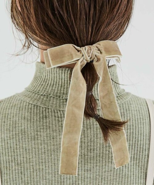 華やかな印象のベロアリボンヘアゴム。 長めに垂らしたリボンが女性らしく、スタイリングのアクセントになります。 サッと束ねたまとめ髪も一気にこなれたヘアスタイルに。 きれいめなコーディネートにはもちろん、カジュアルな服装とも相性良くお使いいただけます。 ベロア素材で秋冬らしく季節感漂う1点です。