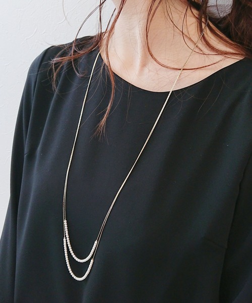 ■ロングチェーン パールネックレス■キラッとするチェーンに小粒のパールを通した2連のパールネックレス。上品な雰囲気でパーティーシーンからデイリーまで幅広くお使いいただけます。【結婚式/パーティー/フォーマル/デイリー/卒業式/入学式】▼商品画像について▼※撮影場所やお使いのモニター環境により実際の商品と若干お色味が異なる場合があります。 =======================《お気に入り登録》でお得な情報がたくさん!▼商品のお気に入り登録▼♡をクリックしてお気に入り登録をすると再入荷通知やラスト1点の通知をお知らせします。▼ブランドのお気に入り登録▼お気に入りショップに追加していただくといち早く ThreeFourTime のお得な情報・新入荷情報を受け取ることができます。=======================