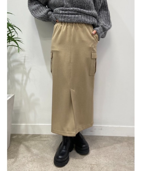 Design Point カジュアルになり過ぎない大人カーゴスカート。 タイトシルエットですっきり仕上げたポケットデザインがアクセントに。 センターベンツが足捌きを良くし、抜け感を出しています。 ウエストゴム仕様に、イージーなストレッチ素材で穿き心地の良さをもたせています。 ※ポケット数:前×2、横×2、後ろダミー×2 Styling Point オフィスカジュアルとしても楽しんで頂けるボトムス。 程よいシルエット感で、ボリュームトップスでもコンパクトトップスでも決まりやすくおすすめです。 着るだけでモード感がアップする今年らしいアイテムです。 Fabric Point <LANATEC LEI/ラナテック レイ>というソフトな膨らみのある風合いが特徴のウール風素材。 シワになりにくく洗濯機で洗えます。 お手入れ簡単で肌触りが良く、日常に馴染むユーティリティー素材です。 ストレッチのツイル紡毛の様なザックリとした表情と膨らみが季節感をもたせます。 ※裏地あり 【生地詳細】 透け感:なし 伸縮性:ややあり 生地の厚み:普通 裏地:あり 洗濯方法:洗濯機洗い可 モデル情報:身長170cm B74 W58 H83 着用サイズ:38 店舗へのお問い合わせ商品番号:523-77025 ●製品寸法: 05:W61cm H90cm 総丈80cm 36:W64cm H93cm 総丈83cm 38:W67cm H96cm 総丈85cm 40:W70cm H99cm 総丈87cm 備考:
