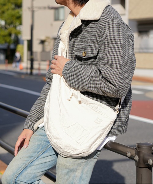 スポーティなスリングバッグは、緩やかにラウンドした独特のフォルムで、体に自然にフィットするつくりで長さ調整がスムーズに行なえます。 金属製バックルを配したストラップは、プルを引くだけで調整が可能。 負担のかかる箇所には3本ステッチで補強しています。 DUCK CANVASとは、経糸と緯糸を交互に交差させて織られた丈夫で摩擦に強い生地です。 高密度に織り上げた平織りの生地は耐久性に優れていて通気性もあり、コットンながら機能性を持ち合わせた素材です。 仕上げには、使い込んだ様な独特の生地感と、柔らかな感触に仕上げるため酵素を混ぜバイオウォッシュ加工を施しています。