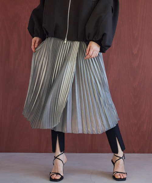 ーーー made in Japan ◆Textile◆ 上品な光沢と透け感が楽しめるオーガンジー生地を使用。 ハリ感がありながらも軽く、さらっと着ていただけます。 生地の動きによって色の変化が楽しめる、シャンブレー素材です。 ◆Design◆ アシンメトリーのラップスカート。 メタリック調の素材特性を最大限に活かしたデザイン。 ランダムなヘムラインとプリーツの幅を部位によって変えることで、ドラマティックな表情を生み出します。 シアー感を楽しめるように、付属のペチコートはあえて丈を短めに設定。 普段の装いを華やかにアップグレードしてくれる一着です。 ーーー ◆Styling◆ あえてカジュアルなトップスと合わせた、スパイスの効いたミックスコーディネートがおすすめです。 パンツやワンピースなどの上から重ねたレイヤードスタイルも◎ 【STERNBERG(スタンバーグ)】 GLOBAL WORKよりデビューした新ブランド。 デザインやパターンの工夫で着る人の個性を引き出す、コンテンポラリーなファッションを提案します。 fatefully「一枚の服が一日を変える。一枚の服で一日が変わる。」 ■商品のお気に入り登録(♡をクリック) ・ラスト一点、再入荷、セール時の通知を受け取れます。 ・クーポンやタイムセールの通知を受け取れます。 ・お気に入り商品を一覧でご覧になれます。 ■ブランドのお気に入り登録 ・新作やイベントなどブランドのお得な情報を受け取れます。
