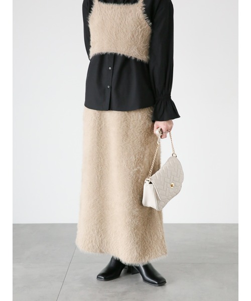 ふんわりとしたシャギーニットがシーズンムードも高めてくれるスカート。広がり過ぎないタイトめのシルエットも上品で大人っぽい印象を演出。後ろ裾にはセンタースリットを入れ、足元に軽やかなヌケ感をプラスします。手洗い可能でご家庭でもお手入れもしやすく、愛用率も高まりそうなアイテムです。同素材のビスチェとのセットアップ可。・HAND WASHABLE手洗いが可能です。F ウエスト:[ゴム仕様]68cm※商品画像は、撮影環境やお客様のご利用のPC・スマートフォンのモニター環境などにより実物と色味に差異がある場合がございます。★《お気に入り登録》でお得な情報をGET★① 商品ページ内のハートマークをクリック!② 以下通知が受け取れます!「再入荷」「ラスト1点」「特別セール」etc..\ブランド、ショップのお気に入りも是非!/