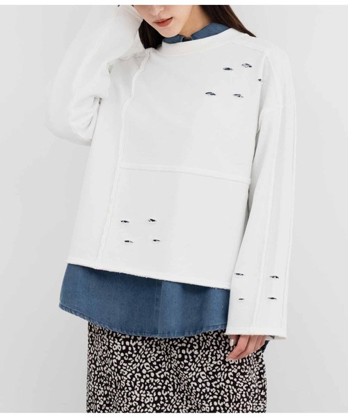 アウトシーム×ダメージ加工がラフな雰囲気のスウェットトレーナー。●ゆるっとしたシルエットが魅力で、ダメージ加工を活かしてレイヤードスタイルも楽しめます。●裾の切りっぱなしディテールもポイント。●肌当たりの優しい裏毛で着心地も抜群です。●シンプルな無地&ベーシックなモノトーンのカラー展開なので、カラーアイテムでアクセントをプラスしたり、柄物と合わせたりと幅広くスタイリングでき、合わせるボトムも選びません◎※ストレッチあり※裏地なし※裾切りっぱなし※オフホワイトは若干透ける素材になっております。※生地のデザイン上、実際の商品と画像とでダメージの配置が異なる場合がございます。予めご了承ください。※商品のお取扱いに関しましては、商品に付属のアテンションカード、洗濯ネームをご覧ください。※モデル着用画像は光の当たり具合で色味が違って見える場合がございます。※商品の色味の目安は、色見本画像をご参照ください。【お買いものをお楽しみいただく為に!】▼商品のお気に入り登録完売カラーの再入荷通知や、ラスト1点の通知、セールの通知も受け取ることができます。▼ブランドのお気に入り登録新商品や再入荷など、いち早くブランドのお得な情報を受け取ることができます。