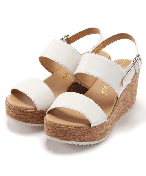 フェイクレザーのダブルベルトを甲に効かせたカジュアルなサンダルです。コルク仕立ての厚底ウェッジで、ナチュラルなリゾート感と着こなしのバランスアップに効くボリューム感を演出。踵をホールドするバックストラップ、フラットに近いゆるやかな高低差など、履き心地のよさも抜群です。