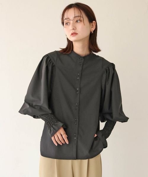 <<<ボリューム感が可愛いパフスリーブブラウス>>>【POINT】・一癖ある袖のデザインがポイントのシャツ。・肩にコンパクトな切替えを作り、袖ギャザーをたっぷり施しました。・袖先はシャーリングの仕様になっており、ぴたっと沿う袖先と袖上のボリュームのバランスが◎・エレガントさもありつつ、大人カジュアルなシャツです。・ボタンが二つずつ付いているのもさりげないポイントです。【STYLING】・マーメイドスカートやタイトスカートを合わせると、より女性らしい印象に。・ワイドパンツやデニムを合わせると、カジュアルな印象に。・シンプルなアイテムのため、様々なアイテムと相性抜群です。・キャミワンピースやベスト、ビスチェなどとのレイヤードスタイルもおすすめです。【FABRIC】◆透け感:ややあり◆厚み:薄手◆伸縮性:袖先のシャーリング部分はあり※撮影場所により、実際の色味と若干異なる場合がございます。 あらかじめご了承くださいませ。【お買い物におすすめの便利機能】※商品のお気に入り登録完売カラーの再入荷時や、ラスト1点の時、セール開始時にお知らせ致します。※ブランドのお気に入り登録新商品や再入荷、セール情報等、いち早くブランドのお得な情報を受け取る事が出来ます。ぜひご活用ください。※ご注文いただいた予約商品のお届け時期の確認は、注文履歴ページより行えます。
