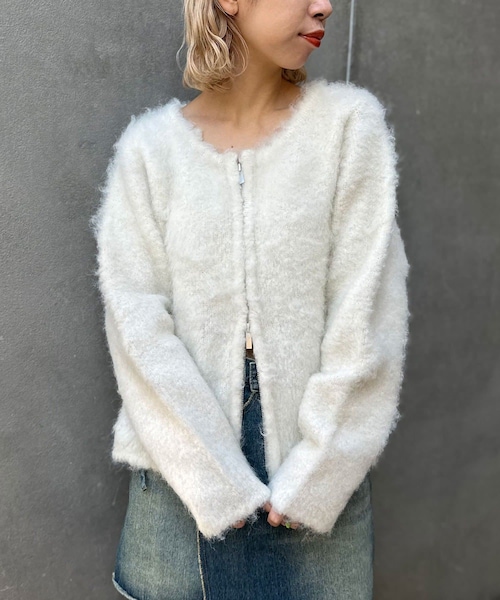 \シンプルながらもトレンド感のある着こなしに/今季注目のダブルジップショートカーディガン▼ポイント・上下どちらからも開くWジップが特徴・顔周りがすっきり見えるゆとりのあるネック・ずっと触っていたくなるもちもちの生地感・腕回りはゆったりとしたサイズ感で着痩せ効果◎◇サイズ感:普通◇着心地:★★★★★▼スタッフレビュー ※骨格は自己診断になります。(women's)【158cm / size:F / 骨格:ナチュラル】腰まわりまでの着丈に伸ばすと手の甲が隠れるくらいの袖丈です。ジップを開けてカーディガンのように着ることもできます。ジップを上下少し開けて着るとヘルシーな肌見せが叶います。ふわふわなシャギーは、ミニ丈ボトムともハイウエストなパンツとも相性抜群です。合わせるボトムス次第で大人カジュアルにも、ストリート風にもなる着まわしやすいアイテムです。【153cm / size:F / 骨格:ウェーブ】肌触りのいいもちもちとした生地で着心地抜群です!厚手過ぎないので、コートやダウンなど冬アウターの中に合わせやすいニットです。腕回りはゆったりとしているので、体型を気にせず着用できるのもうれしいポイントです!------------------------------------------------------透け感:なし伸縮性:あり裏地:なし光沢:なし------------------------------------------------------※着用、お取り扱いの際は、商品についている品質表示とアテンションタグを必ずご確認下さい。※画像の商品はサンプルです。実際の商品と仕様、加工、サイズが若干異なる場合がございます。 ※照明の関係により、実際よりもやや明るく見える場合がございます。またパソコンなどの環境により、若干製品と画像のカラーが異なる場合もございます。予めご了承ください。________________________________________________________________気になるアイテムはお気に入り登録がおすすめです・お気に入り登録した商品はメニューの「♡お気に入り」ボタンから、一覧表示することが出来ます。・完売商品の再入荷情報を受け取る事が出来ます。パソコンの場合・・・「カートに入れる」ボタン横に表示されている「♡」をクリックしてください。スマートフォンの場合・・・商品画像右上に表示されている「♡」をタップしてください。PALCLOSETアプリのブランドフォローがおすすめです・新商品やお得な情報をいち早くcheckする事が出来ます。・スタッフコーディネートや店舗ごとのブログをお楽しみ頂けます。※キャンペーンやフェアにより価格が変動する場合がございます。※照明やパソコンなどの環境により、製品と画像のカラーがやや異なって見える場合もございます。※サンプルで撮影している為、実際の商品と若干仕様が異なる場合がございます。≪返品・交換について≫・着用後、洗濯後の返品・交換は致しかねます。・商品到着後、着用前に商品状態のご確認をお願い致します。